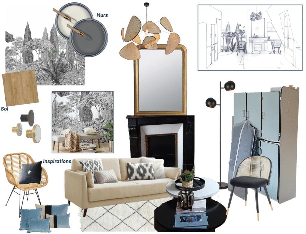 La cliente souhaitait moderniser et apporter le confort manquant à son appartement tout en y intégrant son mobilier vintage et une décoration chaleureuse.